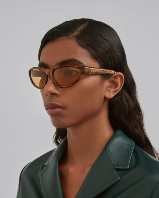 Експерементальний виріб Bones — це унікальний гібрид спортивної маски та сучасних міських окулярів. В центрі окулярів великі лінзи Zeiss, які обертаються навколо циліндричної оправи. Нетипову форму лінз підкреслює переливання дзеркального покриття. Масивна, але легка оправа виготовлена з термоплатичного пластику TR90, який широко використовується в технічних окулярах завдяки його міцним і легким властивостям. Модель в матовому райдужному вицвілому порошковому покритті з відповідними вицвілими різнокольоровими дзеркальними лінзами та сріблястими деталями.