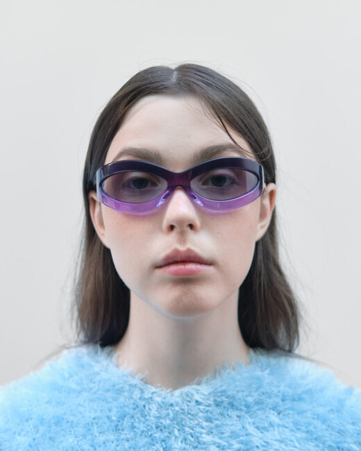 • Кутаста геометрія з овальними насичено-блакитними лінзами.