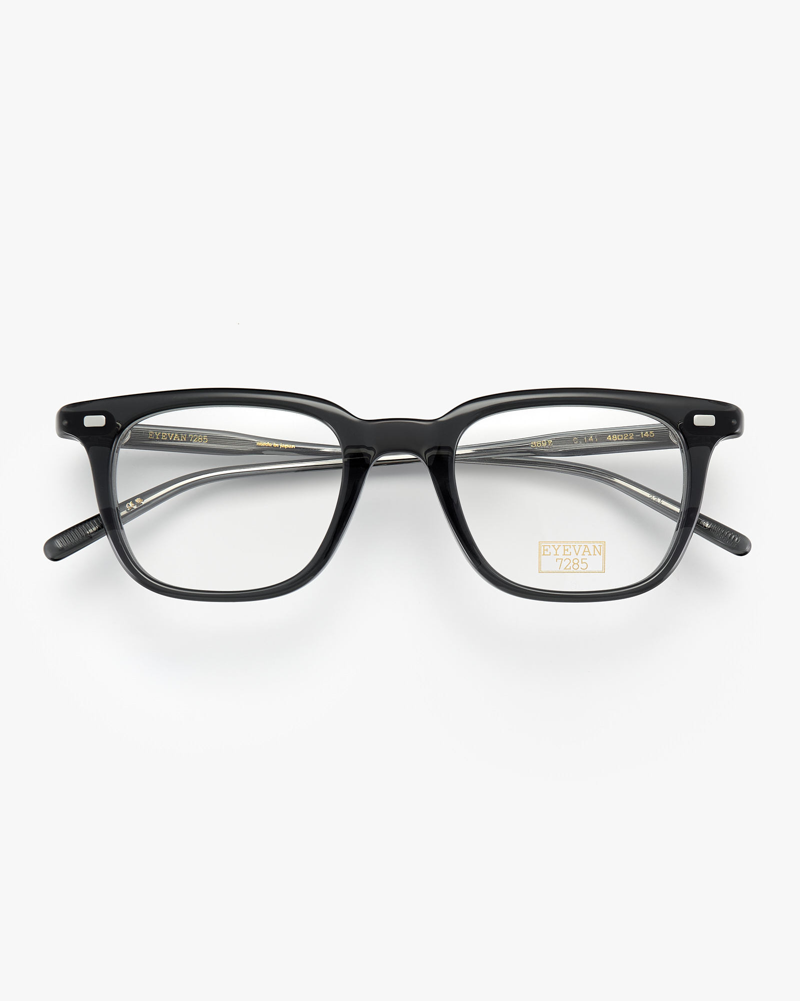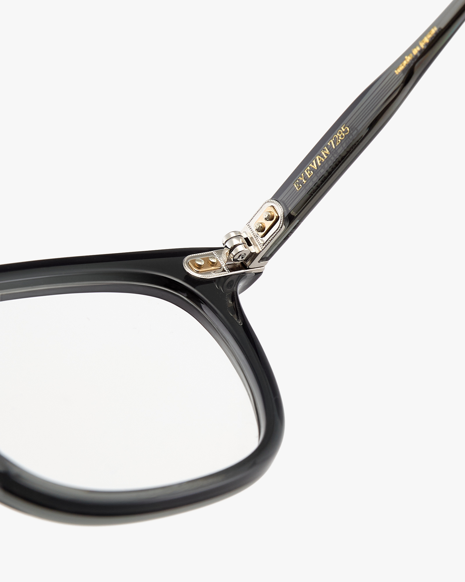 The front metal hinge, secured by two slightly spaced pins, is a new detail specially created for the 353. This piece is the epitome of EYEVAN 7285’s production approach: inspired by vintage, but unlike anything that has come before.