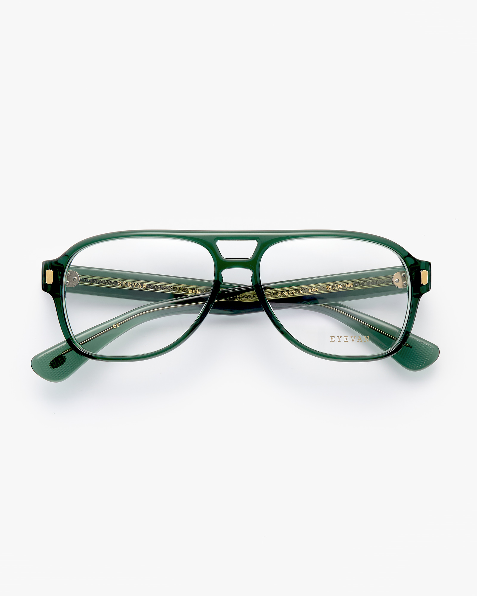 The model interprets the French vintage frames of the 1950s in the Arnel style. The key features of this shape are the curly shape of the frame with sharp corners, a characteristic keyhole bridge, and diamond rivets at the ends. The lenses are a cross between a square and a panto.