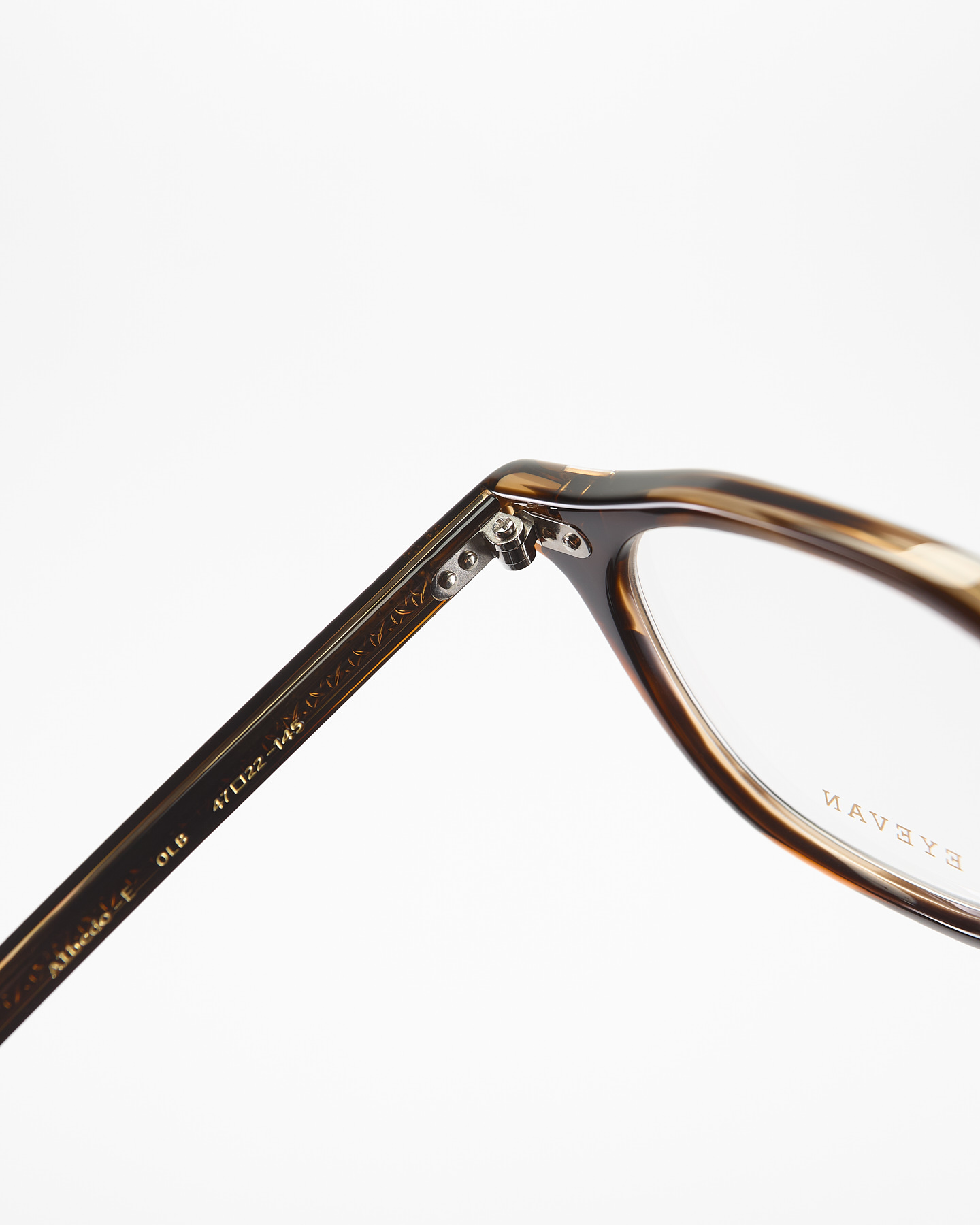 - A metal rod with ornamental embossing can be seen on the inside of the temples.