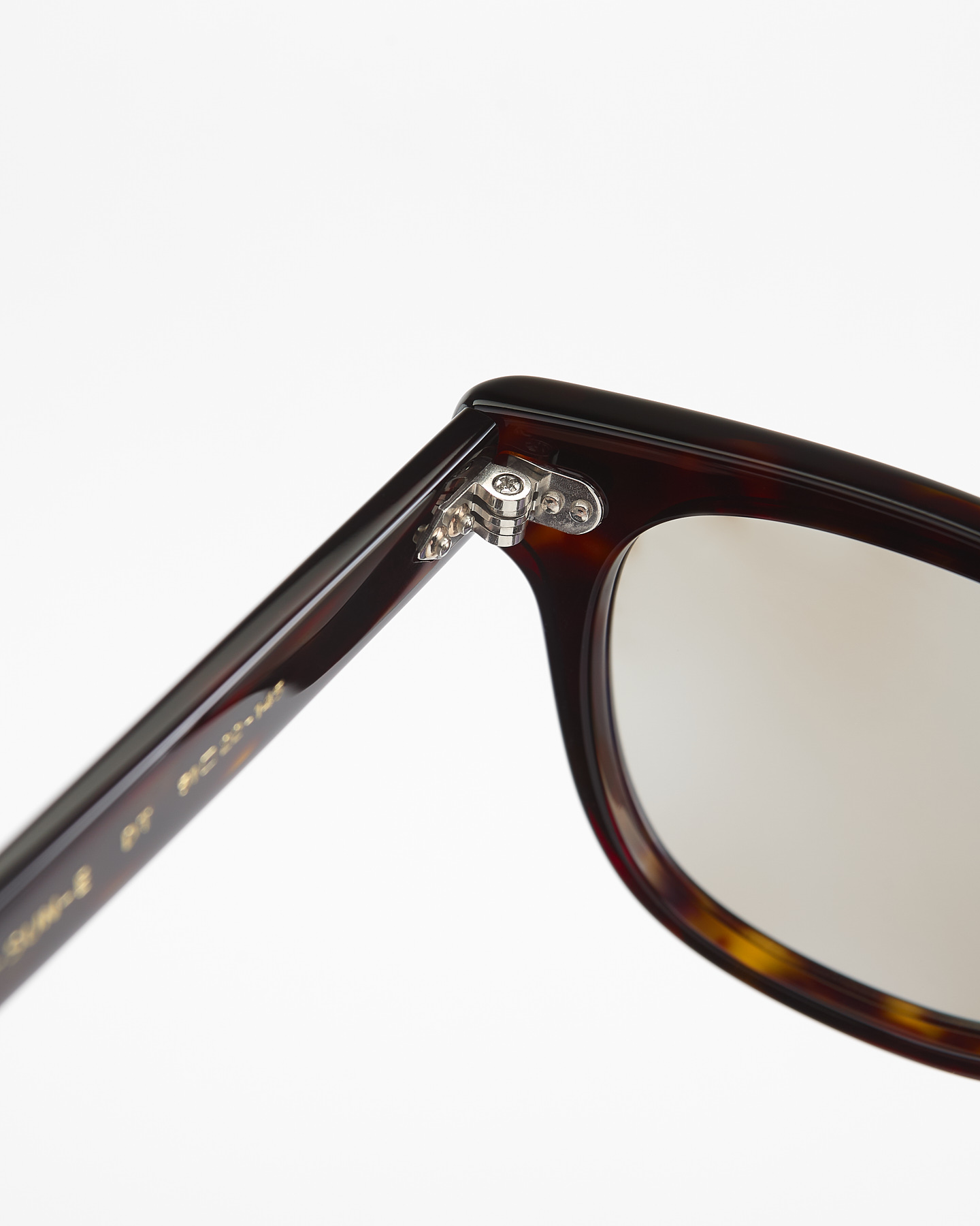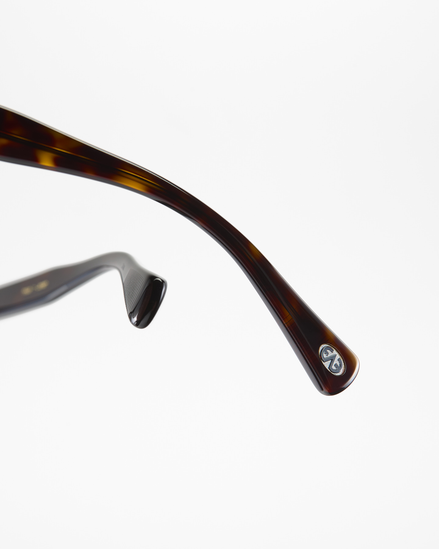 Inspired by American vintage optics, the design of the Hank model is made in the shape of a Wellington. For the hinges, the triangular base design used in the vintage models stored at the EYEVAN factory is reproduced. To prevent the pins from falling out, reinforcing elements typical for the 1990s are used.