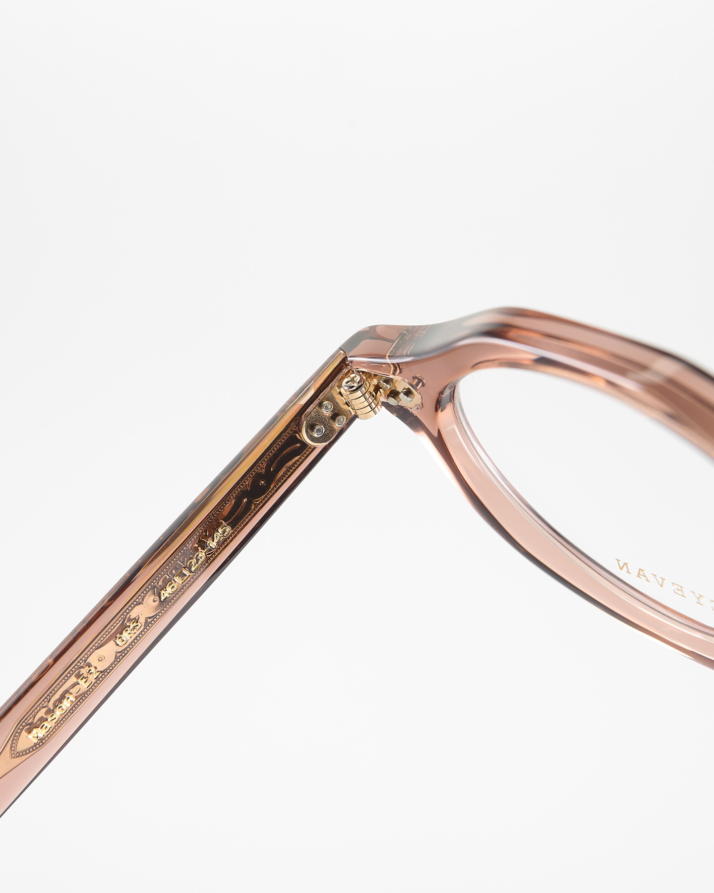 The frame have been inspired by French vintage aesthetics: the solid massive front is complemented by wide temples and classic three-point rivets. The metal hinges are cut into the frame with exceptional precision, and their shape is inspired by the designs of the 60s. Like all EYEVAN products, the Mason model is created with the utmost attention to detail.