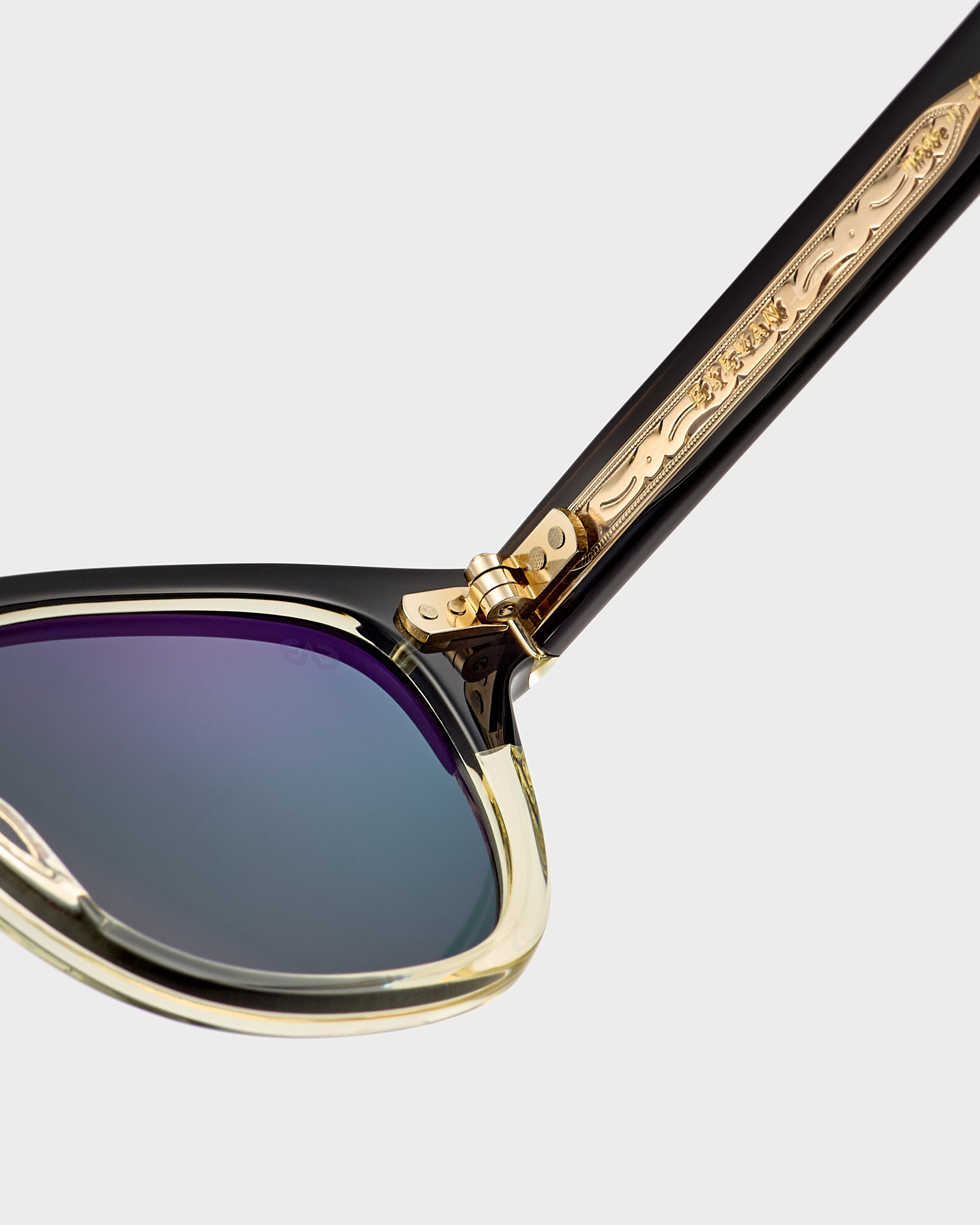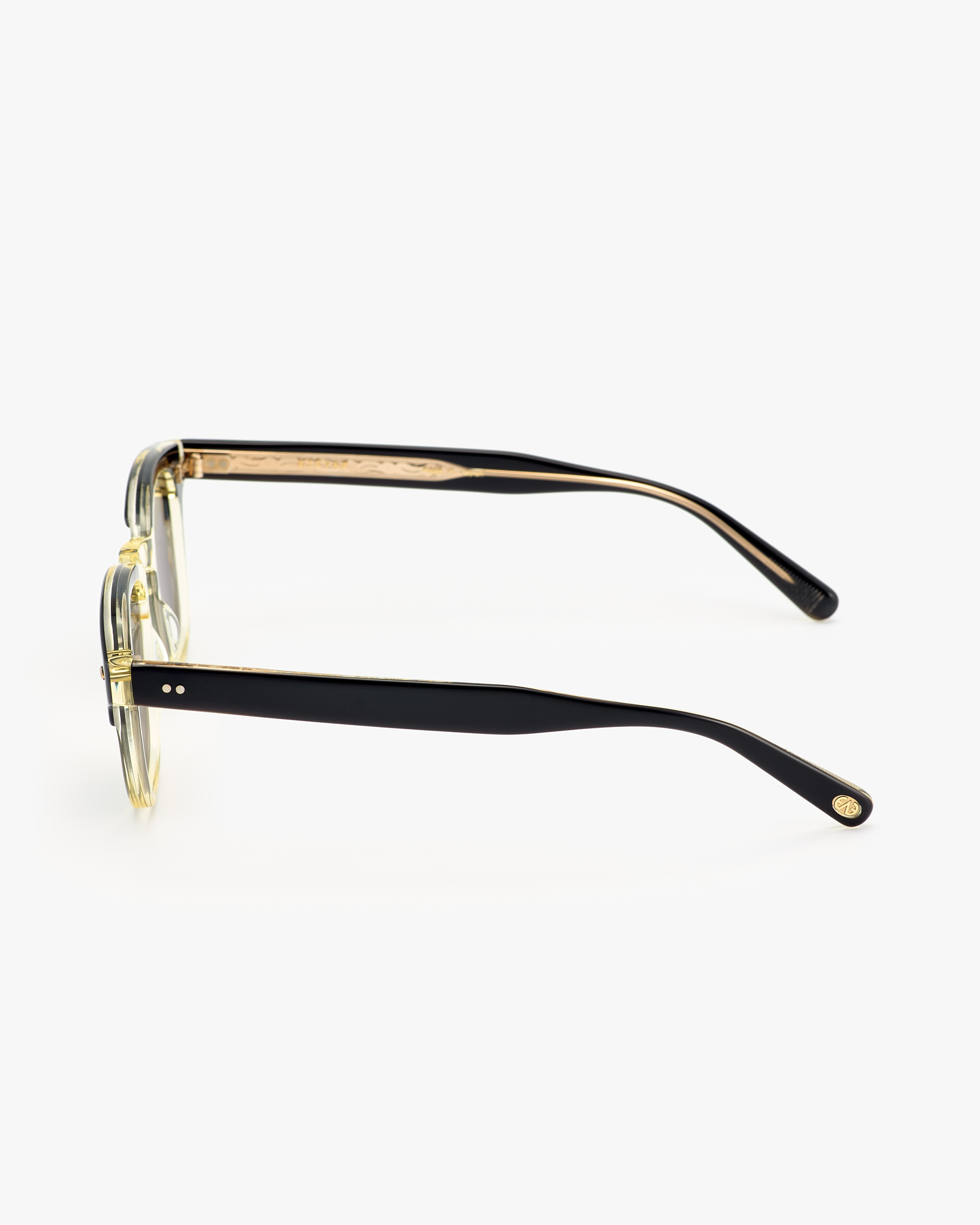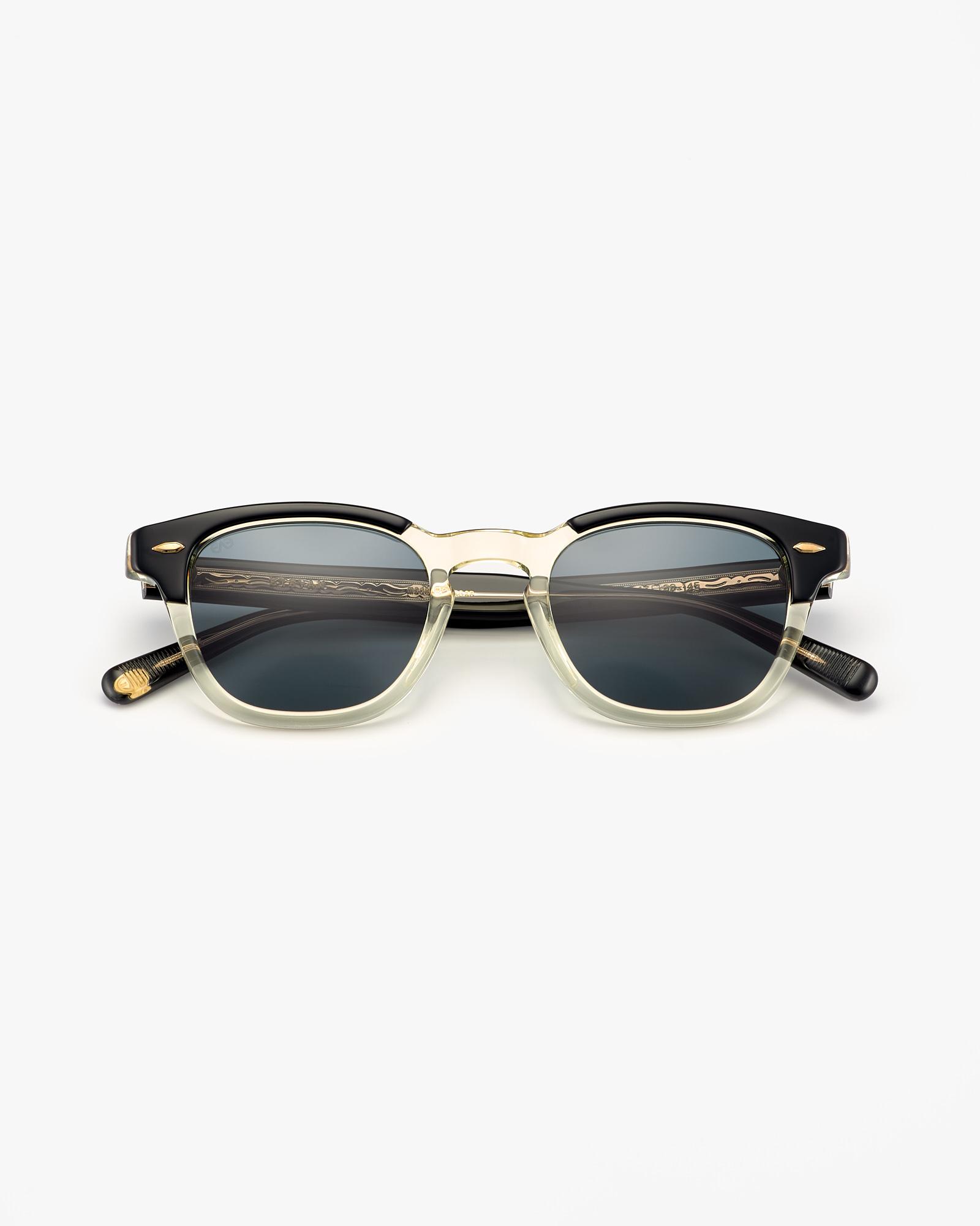 • A metal rod with an embossed ornament on both sides can be seen through the acetate temples.