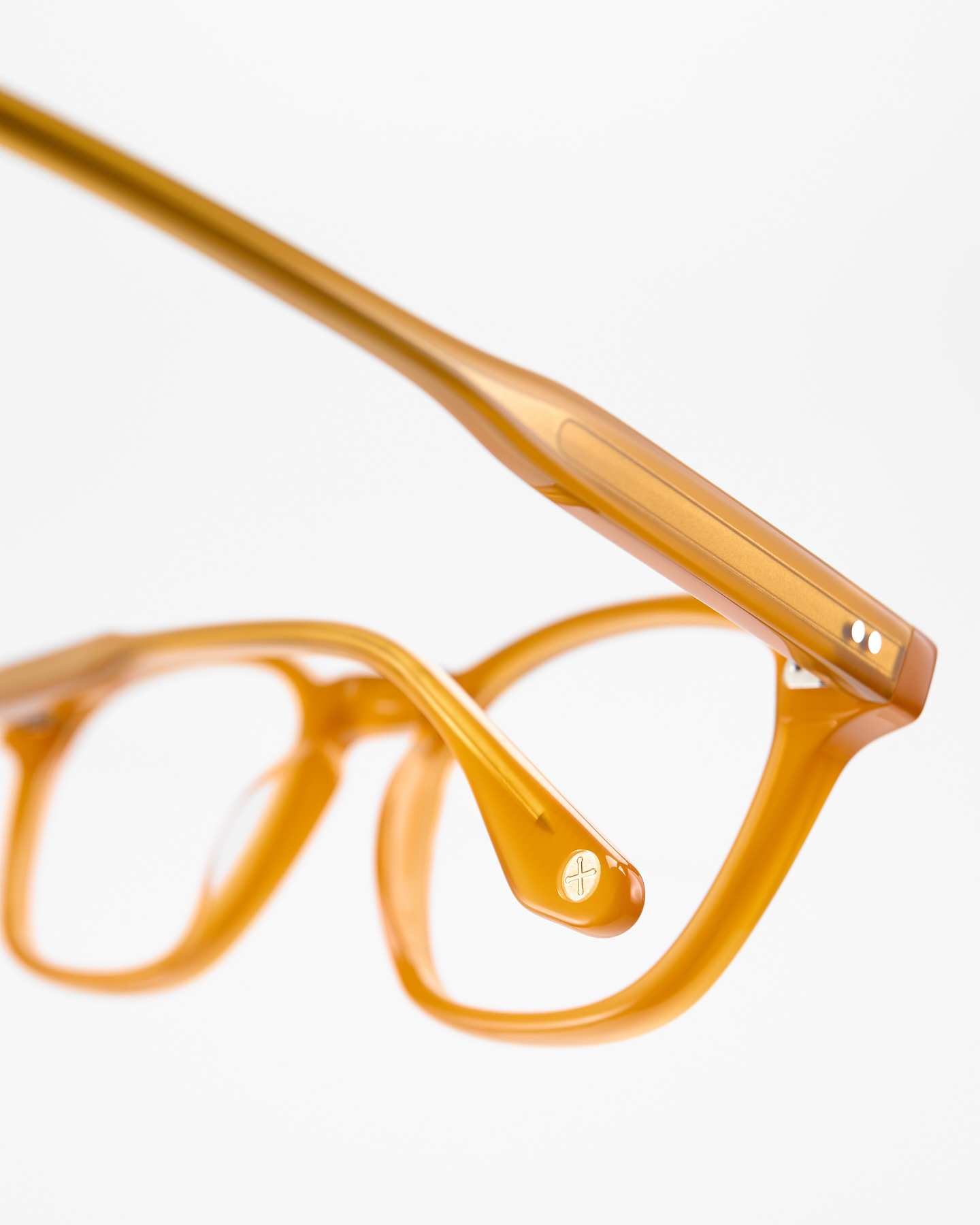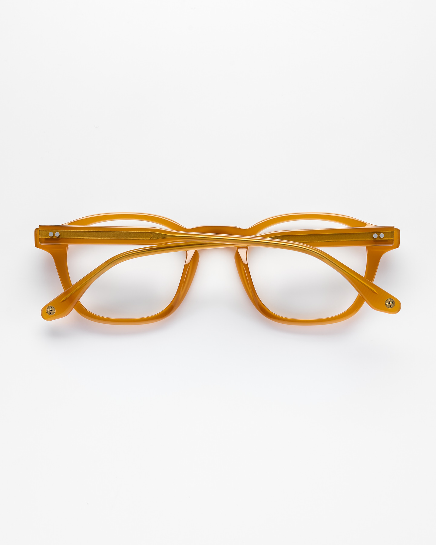 - Square frame made of Mazzucchelli 1849 honey-colored bio-acetate.