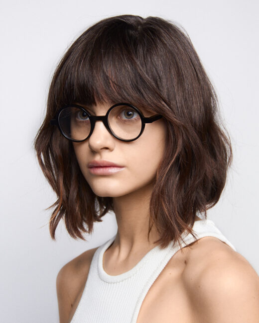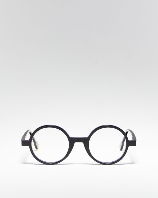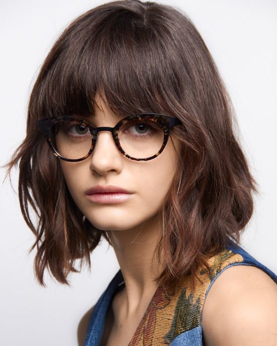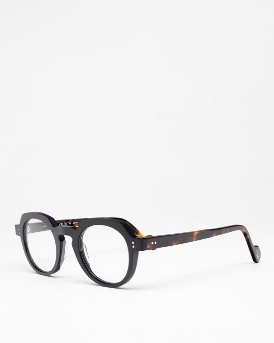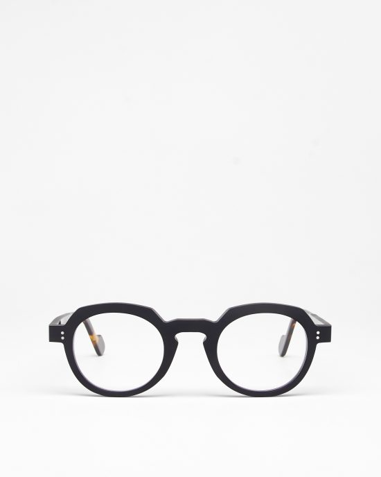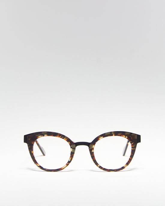 • Округла оправа у чорно-черепаховому кольорі.