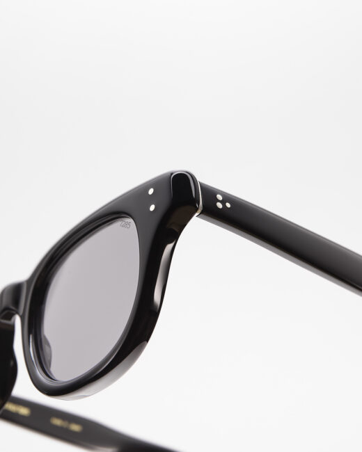 The 349 with its distinctive geometry was inspired by the EYEVAN frames of the early 2000s. Its glossy surface and sharp edges are created by a multi-stage manual polishing process, which takes more than five times longer than usual. A special feature of this model is the original hinge with a pin made of 10-carat gold alloy).
