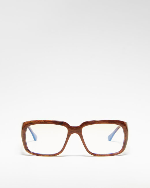 Изящная оправа с плавной трубчатой геометрией. Матовый полупрозрачный серо-синий ацетат.