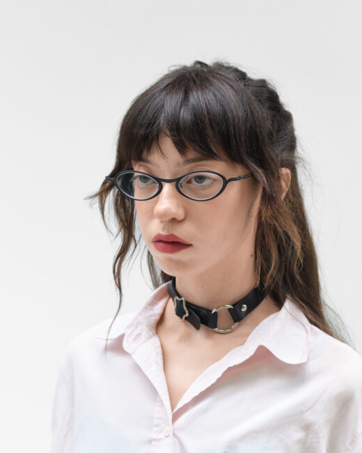 These glasses play with perspective – the way volume is created on a plane. You can make the frame appear thicker by outlining its front and back sides, leaving space between them. The model is available in two colors: a bright main color and a shadowy back color.