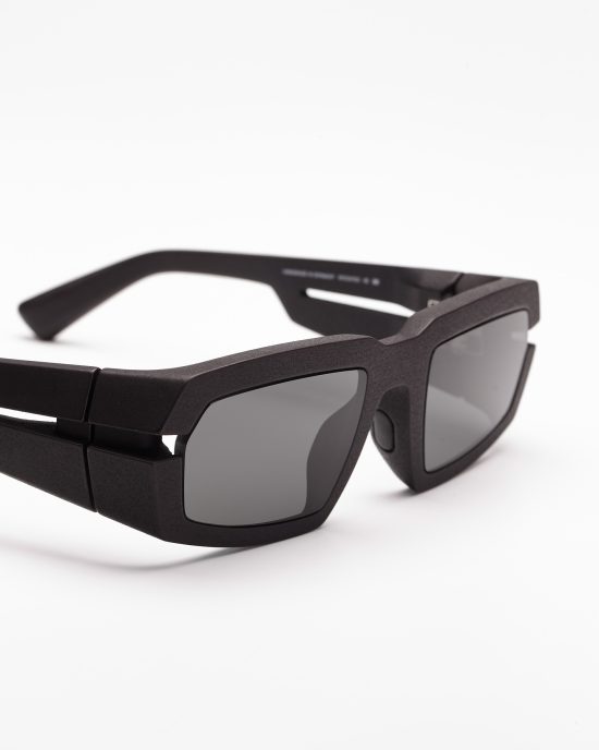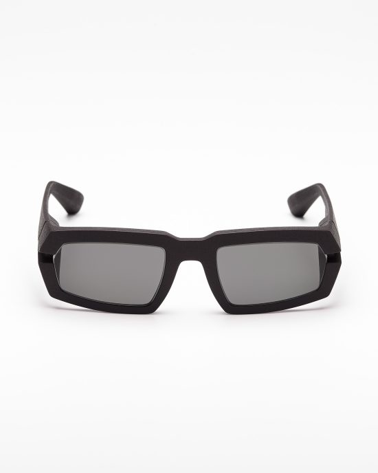 Метод обї’ємного друку, придуманий ще в середині 80-х для створення прототипів, зараз використовується у виробництві остаточних продуктів — наприклад, для виготовлення цих окулярів. В основі матеріалу лежить поліамідний порошок, який після спекання лазером набуває прочну форму з ледь шорсткою поверхнею. Це легкий та пружний матеріал із можливостями надати оправі нетипову геометрію.