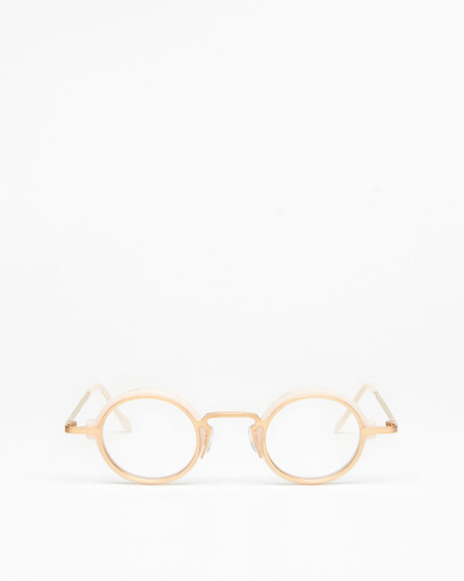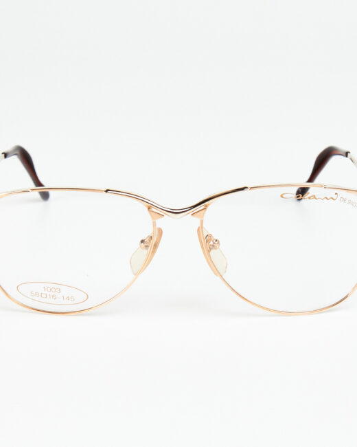 Прямоугольная оправа в стиле кет ай из полупрозрачного двухцветного ацетата. Сделана французским оптическим домом Каролины Абрам в середине 2010-х. Ручная работа.
