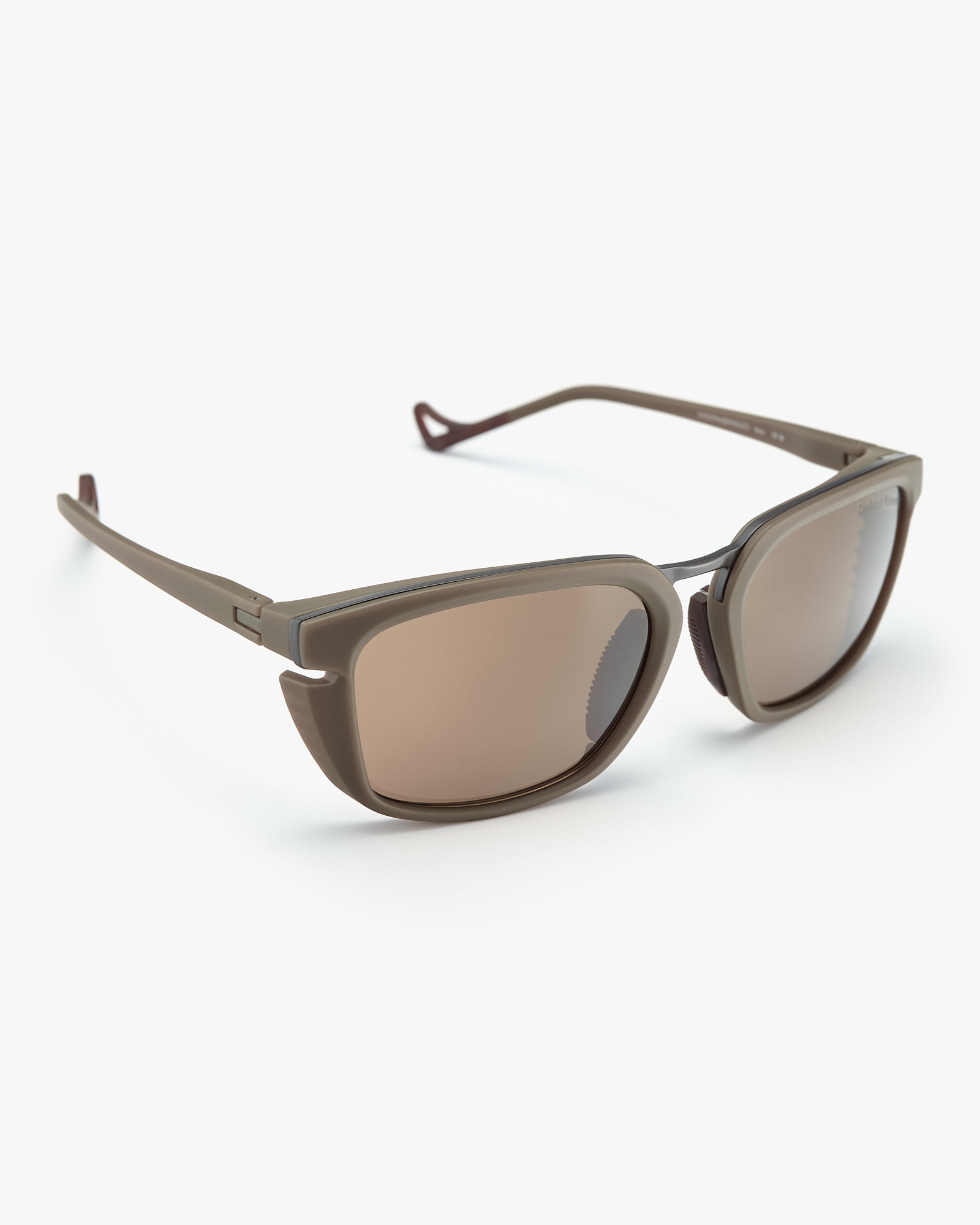 • Оправа має титановий каркас та інтегровані бічні шори. Елемент запозичений з альпійського спорядження для зменшення потрапляння бокового світла.