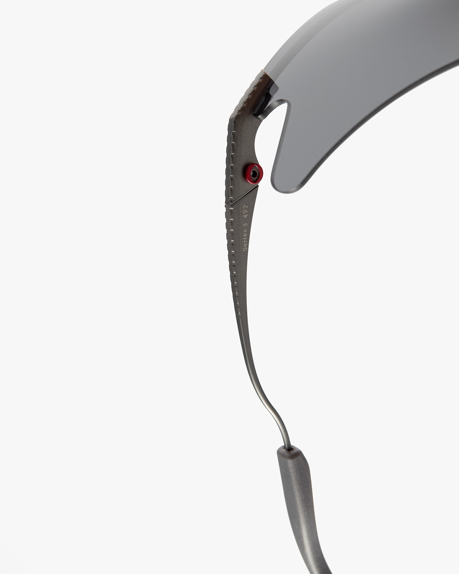 - Аеродинамічна форма лінзи натхненна швидкісним велоспортом 1980-х років.