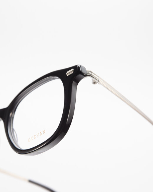 Натхненна італійською вінтажною оправою з каталогу 1972 року, успадкованого першою дизайн-командою Eyevan, ця модель переосмислює ключовий елемент конструкції — титановий накінечник із м’яким заокругленням (див. 2 фото). В самій оправі використано квадратну форму, яка була серед напрацювань поточної дизайн-команди. Модель доповнена новим штифтом із прямокутною заклепкою, натхненною конструктивними формами елементами архітектури Френка Ллойда Райта.