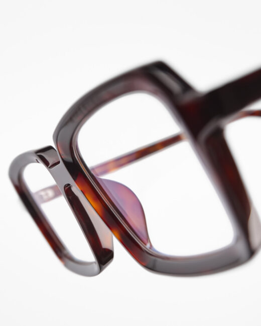 Модель втілює ідею переосмислення німецької металевої вінтажної оптики 70-х років, але в ацетатному виконанні. Фронтальна частина оправи виготовлена з 6-міліметрового ацетату, який сточено до 4 мм, щоб підкреслити чіткі лінії та виразні краї. Образ металевої деталі передано завдяки опуклому потовщенню в зоні торців.