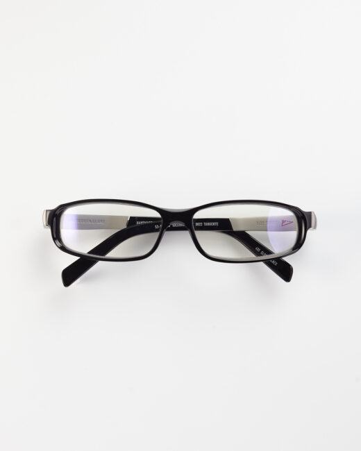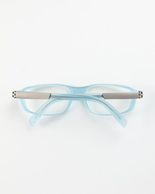 - Прямокутна оправа з гнучкої листової нержавіючої сталі та текстурованого ацетату.