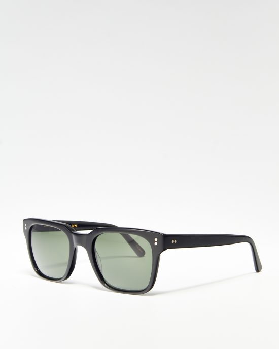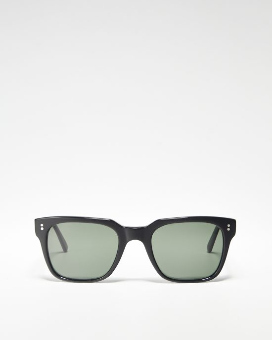 Классические солнцезащитные очки в квадратной оправе. Прозрачный ацетат, фирменные ромбовидные заклёпки, прочные пятизубчатые шарниры. Модель укомплектована тёмно-зелеными минеральными линзами.
