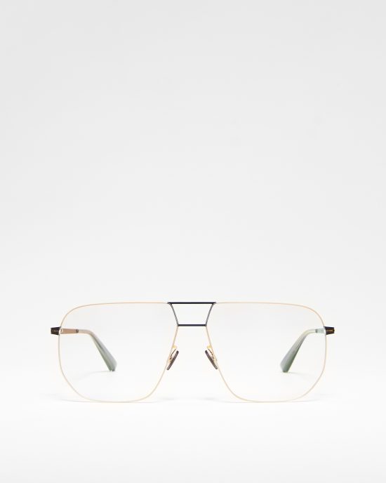 Угловатая оправа с завышенным мостом из новой ультралегкой серии Lessrim, сделанной на основе едва заметной конструкции вокруг окуляра. Линзы закреплены в оправу с помощью тонкой нержавеющей листовой стали толщиной 0,6 мм. Запатентованные спиральные шарниры.