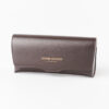 Оригинальная классическая оправа. Круглая форма окуляров вписана в угловатый силуэт рамки. Полупрозрачный серо-коричневый ацетат, черепаховые дужки. Ручная работа. Италия.