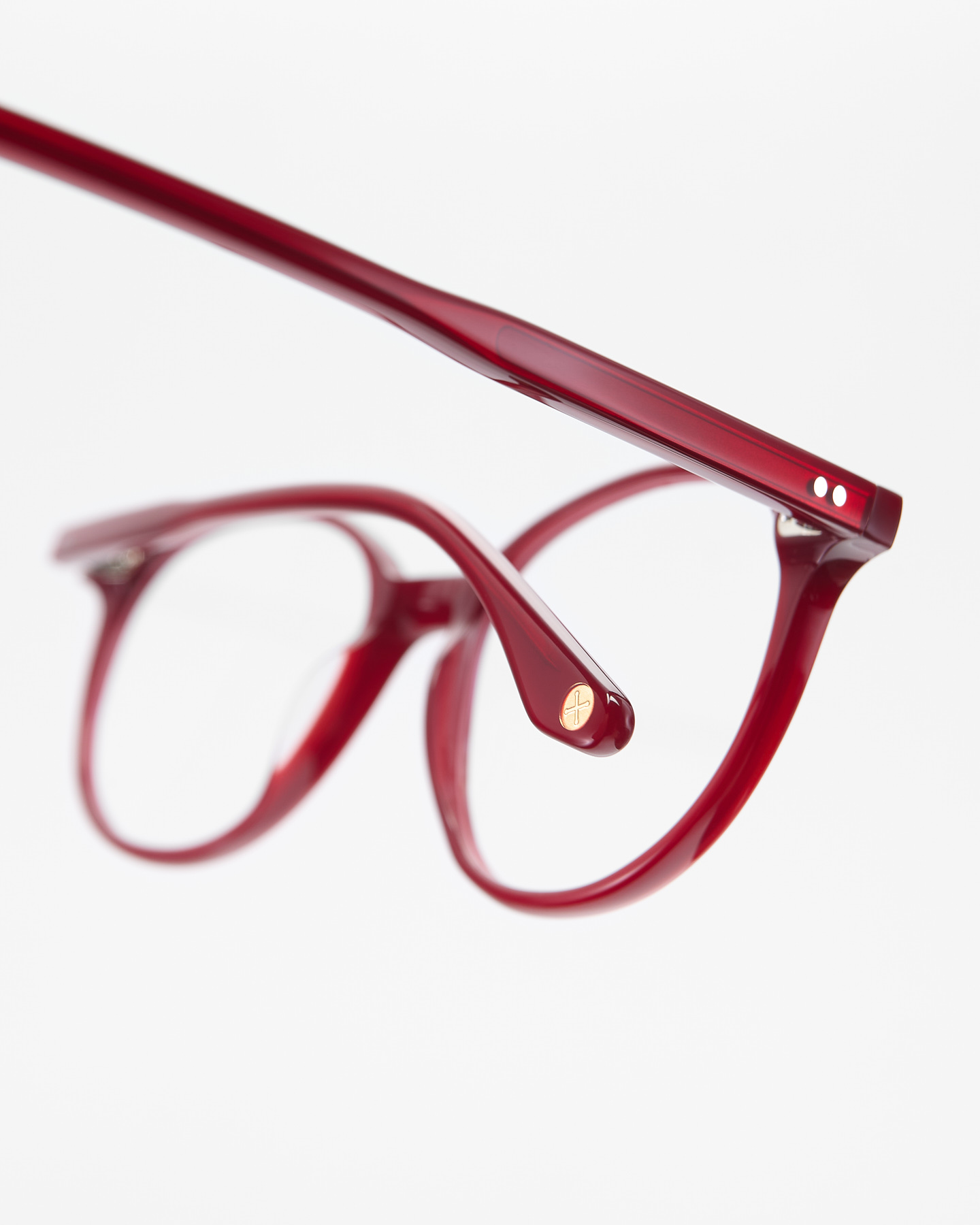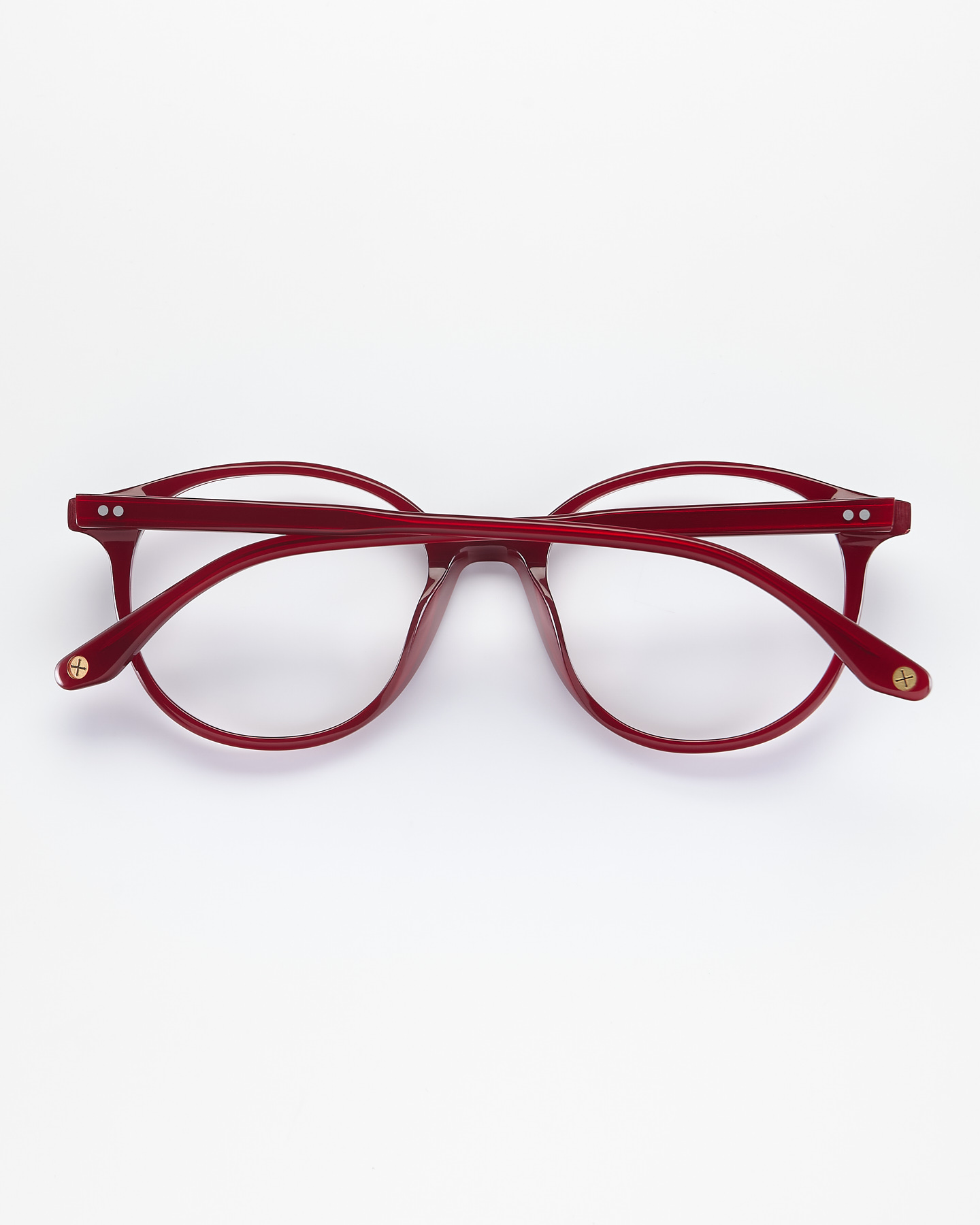 - Класичні двоточкові заклепки на торцях оправи та дужках.