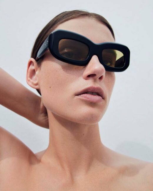 Окуляри Luce поєднують вінтажні елементи, переосмислені для 21 століття. Оправа має безсмертний ключовий місток, металеві заклепки на торцях та округло-квадратну форму. У моделі використано темний черепаховий ацетат з темно-зеленими лінзами.