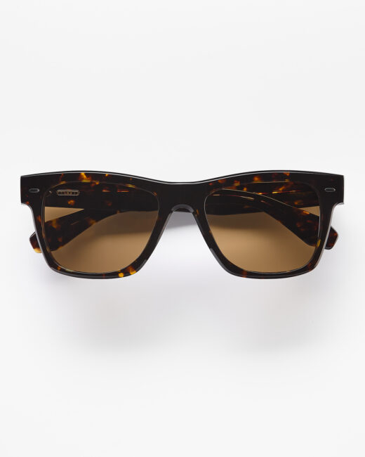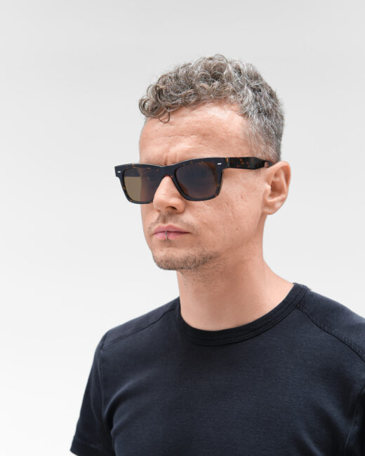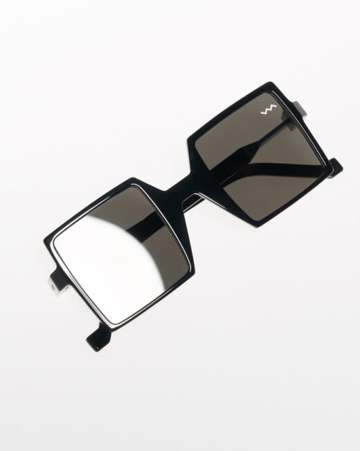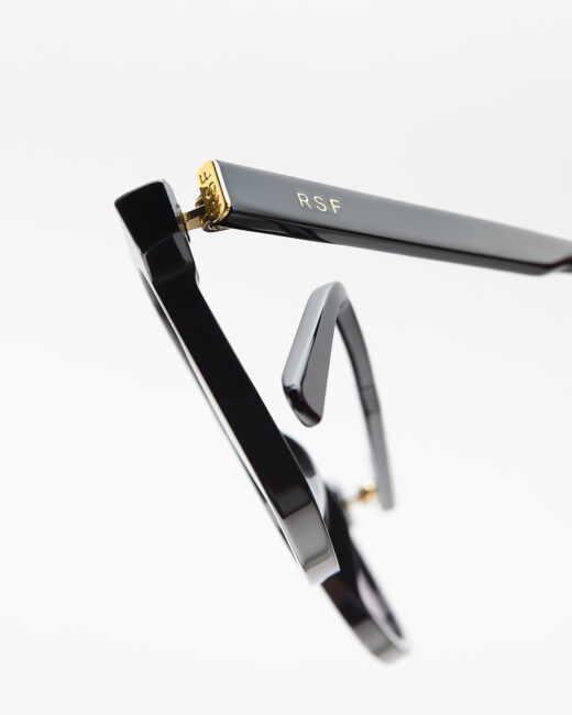 Zaga має виразний характер. Її міцна прямокутна оправа відображає майстерність обробки ацетату, реалізовану через свіжий і грайливий дизайн. У цій версії Zaga виконана з позачасового блискучого чорного ацетату, доповненого напівпрозорими жовтогарячими лінзами.