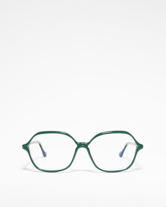 Квадратная оправа с круглой формой окуляров. Наружная поверхность оправы обточена в нескольких плоскостях. Матовая отделка ацетата. В комплекте твердый футляр с обшивкой из флока или из пробкового дерева.