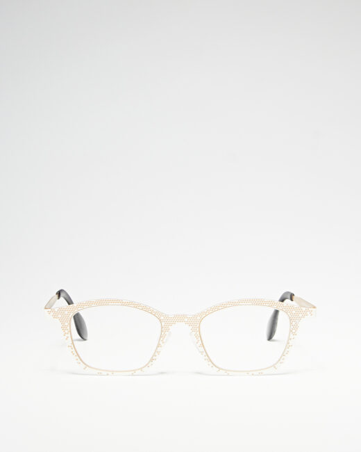 Ці окуляри обігрують перспективу – те, як створюється об’єм на площині. Надати уявну товщину виготовленій оправі можна окресливши її передню та задню сторони, залишаючи простір між ними. Модель розгортається в двох кольорах: яскравого основного та заднього тіньового.