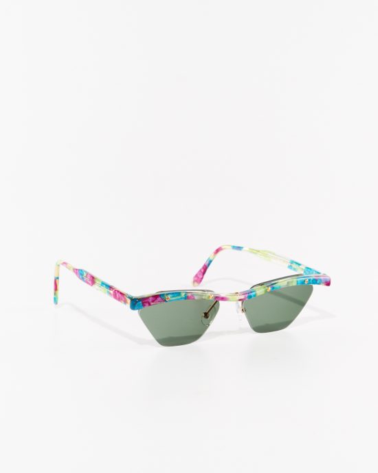 Мелкие винтажные очки с круглыми окулярами. Тонкая металлическая оправа с цветной эмалью. Длинные дужки на шарнирах с пружинами.